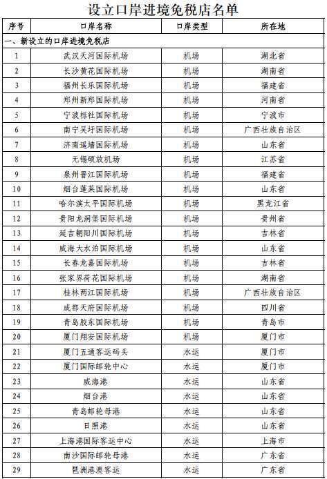 一、在武汉河汉国外机场等41个港口各新设1家港口进境免税店。其中,横琴港口进境免税店树立后,允许自澳门进境住户搭客在该港口进境免税店购买一定数目(15000元以内)的免税商品。