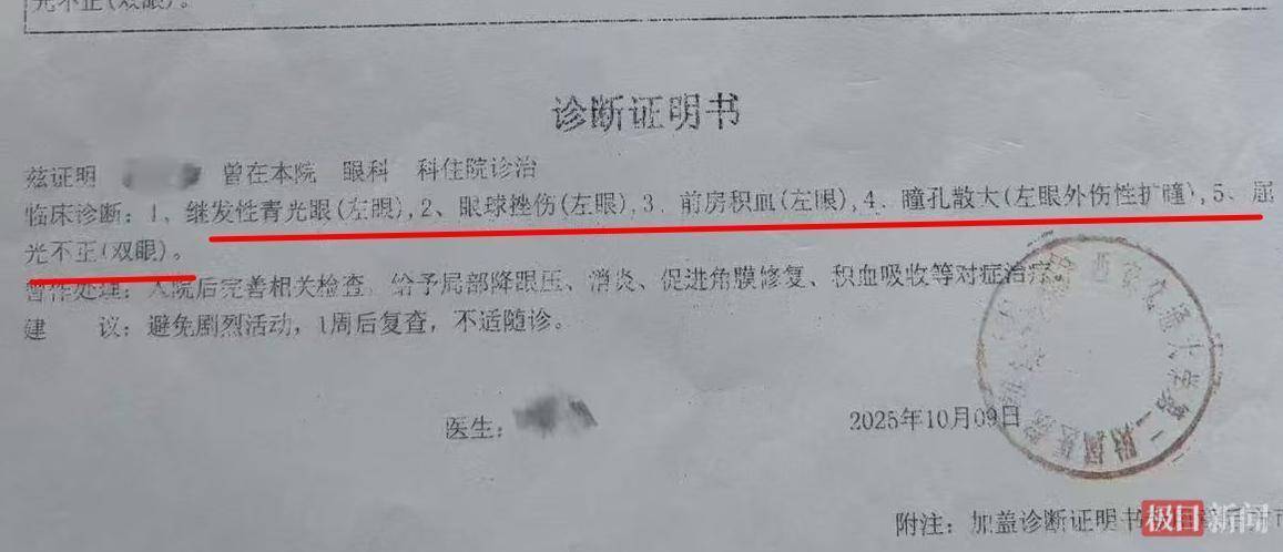 报案后,校方得意家长带小雅到外省进一步诊治。12月16日,中山大学附庸眼科病院门诊病历披露,小雅左眼被会诊为继发性青光眼、眼毁伤、外伤性瞳孔散大和屈光不正。